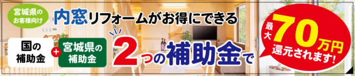 無料見積り・相談 電話で見積り・相談 0120-705-582 【受付】9:00~18:00【定休日】水曜日 電話で見積り・相談 HOMEリフォームコラムお知らせ内窓補助金のページをご用意致しました! 内窓補助金のページをご用意致しました! 投稿日: 2022年8月25日 カテゴリー:お知らせ 平素は格別のご高配を賜り厚く御礼申し上げます。国や各自治体より、現在省エネリフォームに対し、補助金を受け取ることが出来る!ということをご存知でしょうか?省エネリフォームとは、室内における暑さ、寒さなどの快適性向上(熱的快適性の向上)、及び暖冷房や給湯などの設備機器で消費するエネルギーを少なくすること(省エネルギー)を目的として実施するリフォームのことです。上記、対象リフォームに対して補助金を受け取ることができます。その中でも特に断熱性の向上を実感することができつつ、手掛けやすいということで【内窓リフォーム 補助金活用ページ】をご用意致しました。興味がある方は是非、下記バナーよりご覧ください!▽バナーをクリックするとページが開きます▽ お知らせ リフォームコラム一覧 最新の投稿 年末年始休業のお知らせ 【速報】国の補助金2026年度版が発表されました 夏季休業のお知らせ ゴールデンウィーク休業のお知らせ 【お知らせ】「サンダイホーム」と「東北電力」は リフォーム・リノベーション事業で業務提携します! 【速報】国水廻り補助金 子育てグリーン住宅支援事業詳細が発表されました 【泉・青葉ショールーム】新しいキッチン入荷しました 【泉・青葉ショールーム】新しいキッチン入荷しました 年末年始休業のお知らせ 【泉・青葉ショールーム】新しいキッチン入荷しました カテゴリー 展示品 (5) イベントチラシ (1) お知らせ (30) 定番チラシ (18) コラム (4) その他 (1) 月別アーカイブ 2025年12月 (1) 2025年11月 (1) 2025年8月 (1) 2025年4月 (1) 2025年2月 (3) 2024年12月 (4) 2024年11月 (2) 2024年10月 (2) 2024年8月 (2) 2024年6月 (1) 2024年5月 (1) 2024年4月 (2) サンダイホームについて サンダイの10のこだわり 会社案内代表挨拶会社概要企業理念店舗情報 リフォームの流れ よくある質問 サンダイホームの受賞実績 補助金・助成金について 震災への取り組み プライバシーポリシー 新築施工事例 施工事例一覧 補助金活用リフォーム リノベーション 増改築リフォーム マンション 新築 キッチンリフォーム 浴室リフォーム 給湯器・エコキュート トイレリフォーム 洗面リフォーム 窓・玄関 内装リフォーム 外壁・屋根リフォーム 塗装リフォーム 外構リフォーム お客様の声 お客様の声一覧 イベント情報 イベント情報一覧リフォームメニュー お買い得商品 LIXIL サンダイオリジナルシャワートイレ(チラシ掲載商品) ¥114,000~(税込) ショールーム展示 TOTO サザナHTシリーズ Sタイプ(宮城野・多賀城店展示) ¥1,028,000~(税込) 内窓リフォーム YKKAP プラマードU 2枚建引違い(Low-E複層ガラス) 小サイズ ¥30,000円~(税込) 玄関ドアリフォーム YKKAP 高断熱玄関ドア ドアリモ D30(チラシ掲載商品) ¥234,000円~(税込) キッチンリフォーム LIXIL シエラS(チラシ掲載商品) ¥605,000~(税込) 浴室リフォーム TOTO サザナHTシリーズ Nタイプ(チラシ掲載商品) ¥848,000~(税込) トイレリフォーム LIXIL サンダイオリジナルシャワートイレ(チラシ掲載商品) ¥114,000~(税込) 洗面化粧台リフォーム LIXIL ピアラ( 2店舗展示) ¥171,000~(税込) 給湯器リフォーム Paloma エコジョーズ ¥128,000円~(税込) シャッター・雨戸 LIXIL リフォームシャッター 手動標準タイプ(チラシ掲載商品) ¥119,000円~(税込) リフォームメニュー一覧 お買い得商品 ショールーム展示 内窓リフォーム 玄関ドアリフォーム キッチンリフォーム 浴室リフォーム トイレリフォーム 洗面化粧台リフォーム 給湯器リフォーム シャッター・雨戸 お役立ち情報 ショールーム紹介 不動産情報 各種お問い合わせ お問い合わせ 無料お見積もり 資料請求 イベント参加 各種お問い合わせ 住まいのお悩み相談はこちらから 電話で相談する 自宅から相談する すぐにお悩みを解決 リフォームで最後までサポート WEBで相談する WEBから気軽に相談可能 オンライン相談も可能! 現状調査や見積もり依頼にも対応 ショールームで相談する 実際の商品を見ながら確認が可能 資料と合わせて説明を聞くことが可能 実際のリフォーム現場が見られる - トップに戻る - サンダイホーム・グループ サンダイ本社 サンダイ本社宮城県仙台市泉区長命ケ丘6-15-10 | 0120-70-5582 泉・青葉ショールーム仙台市泉区長命ケ丘 6-15-10 | 0120-70-5582 宮城野・多賀城ショールーム仙台市宮城野区中野字寺前 68-1 | 0120-70-5582 岩沼・名取ショールーム岩沼市栄町 1-9-1 | 0120-70-5582 営業部 リフォーム・リノベーション・新築仙台市泉区長命ケ丘 6-15-10 | 0120-70-5582 ライフサポート仙台市泉区長命ケ丘 6-15-10 | 0120-70-5582 解体仙台市泉区南中山 2-3-12 | 0120-70-5582 不動産仙台市泉区長命ケ丘 6-15-10 | 0120-70-5582 [統括管理会社]株式会社サンダイホーム|仙台市泉区長命ケ丘6-15-10|022-341-5152 [施工管理会社]株式会社