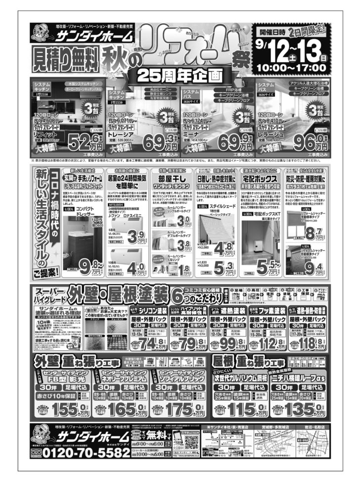2020年9月12日(土)~13(日) タカラスタンダード 秋のリフォーム祭り(終了しました)