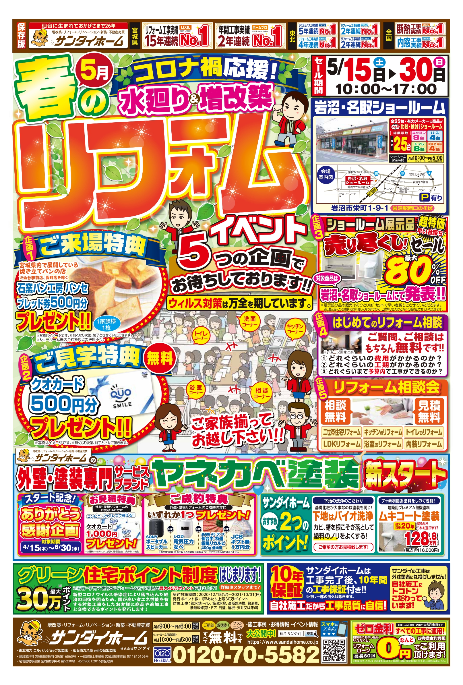 2021年5月15日(土)~30日(日) 岩沼・名取ショールーム開催 春のリフォームイベントのご案内(終了しました)