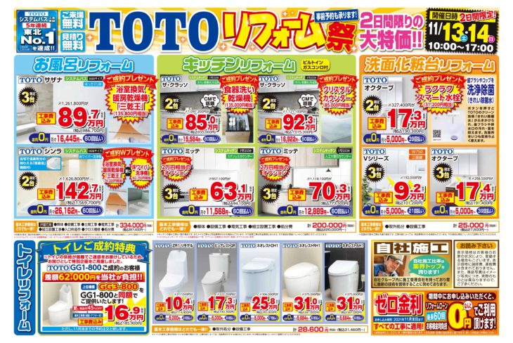 2021年11月13日(土)~14(日) TOTO リフォーム祭のご案内(終了しました)