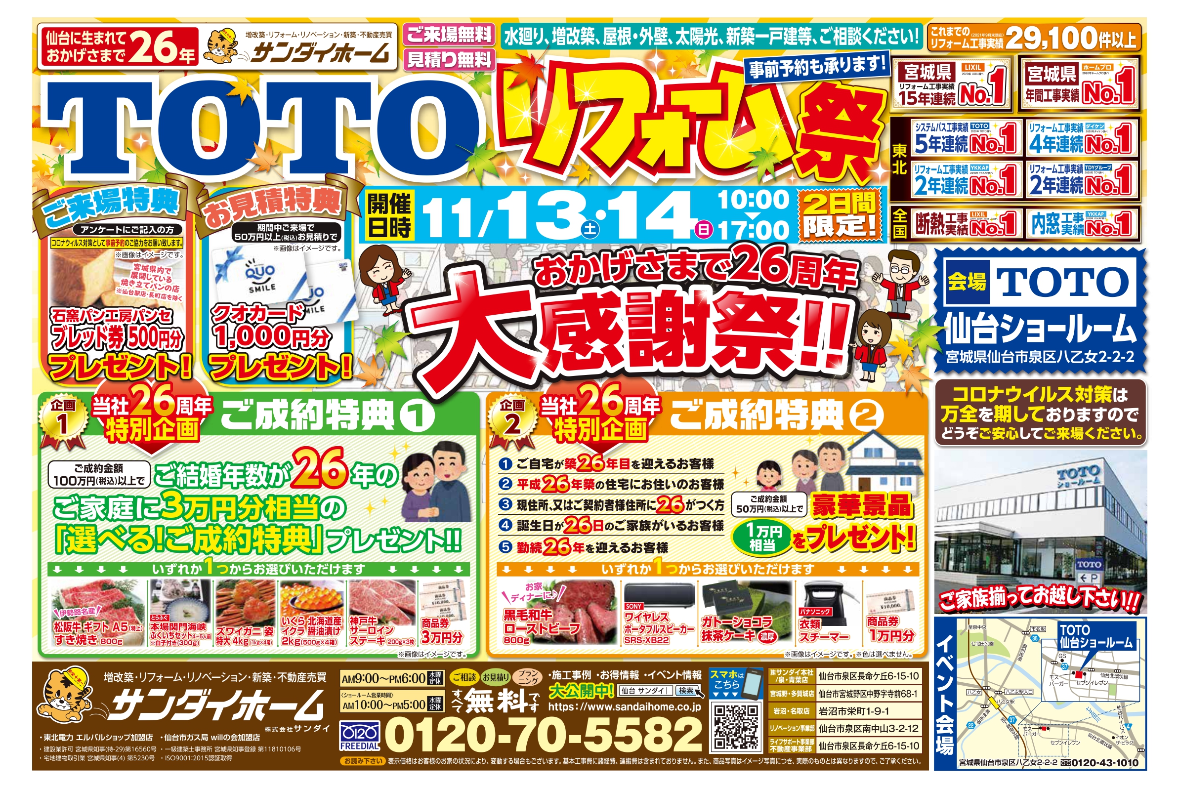 TOTO仙台ショールームでリフォーム祭りを開催致します!