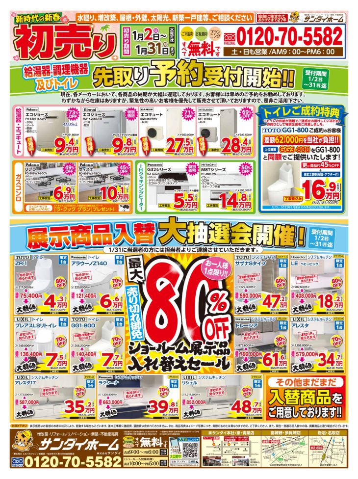 人気の水廻り商品を大特価で販売いたします。