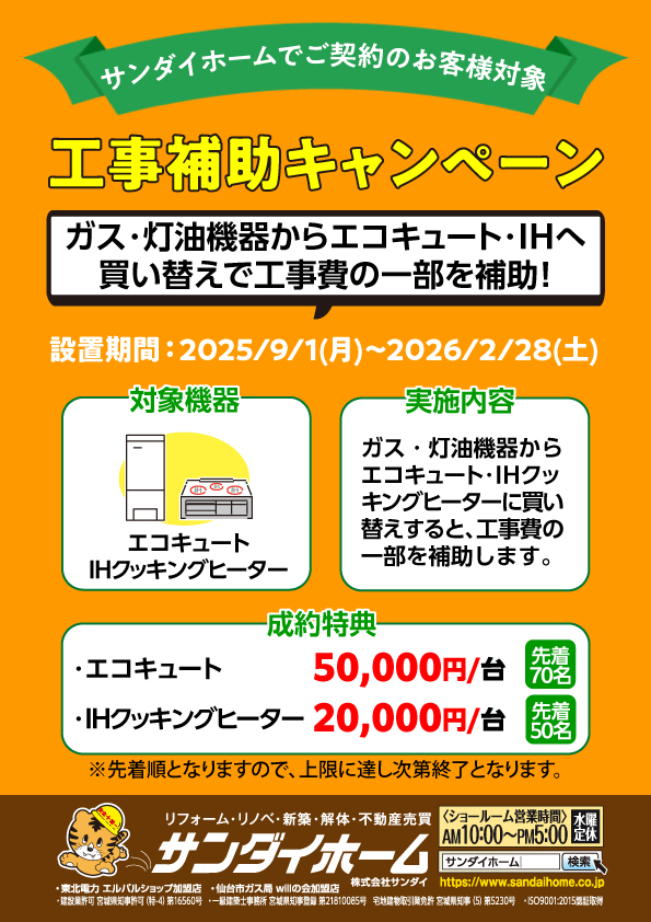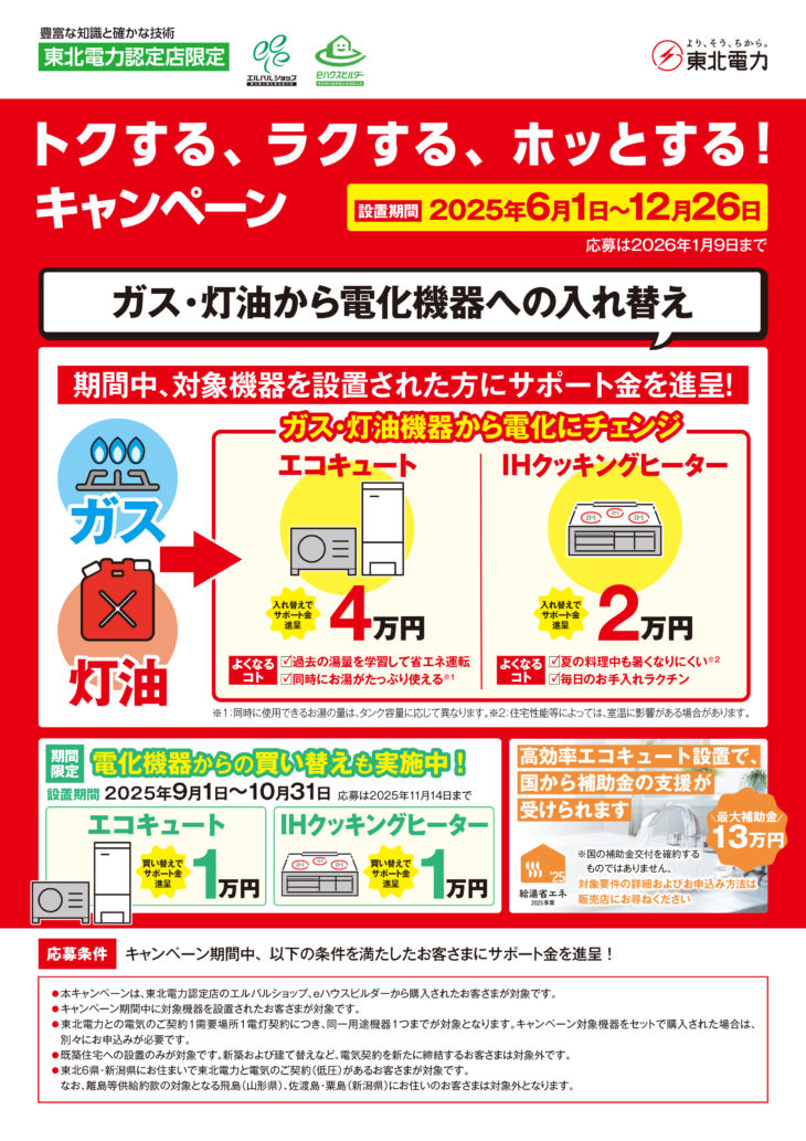 東北電力の電化キャンペーン&サンダイホームの工事補助キャンペーン実施中!