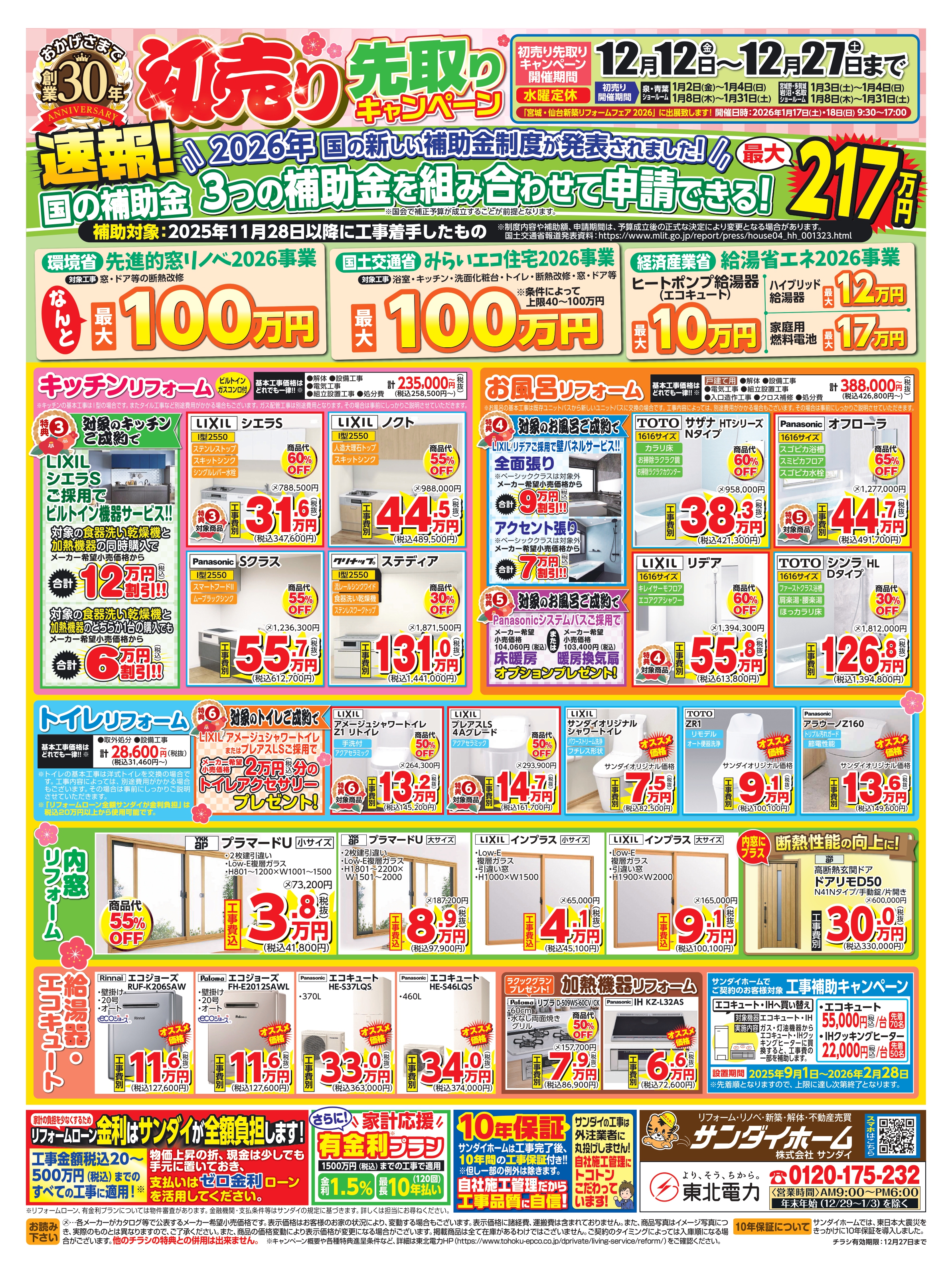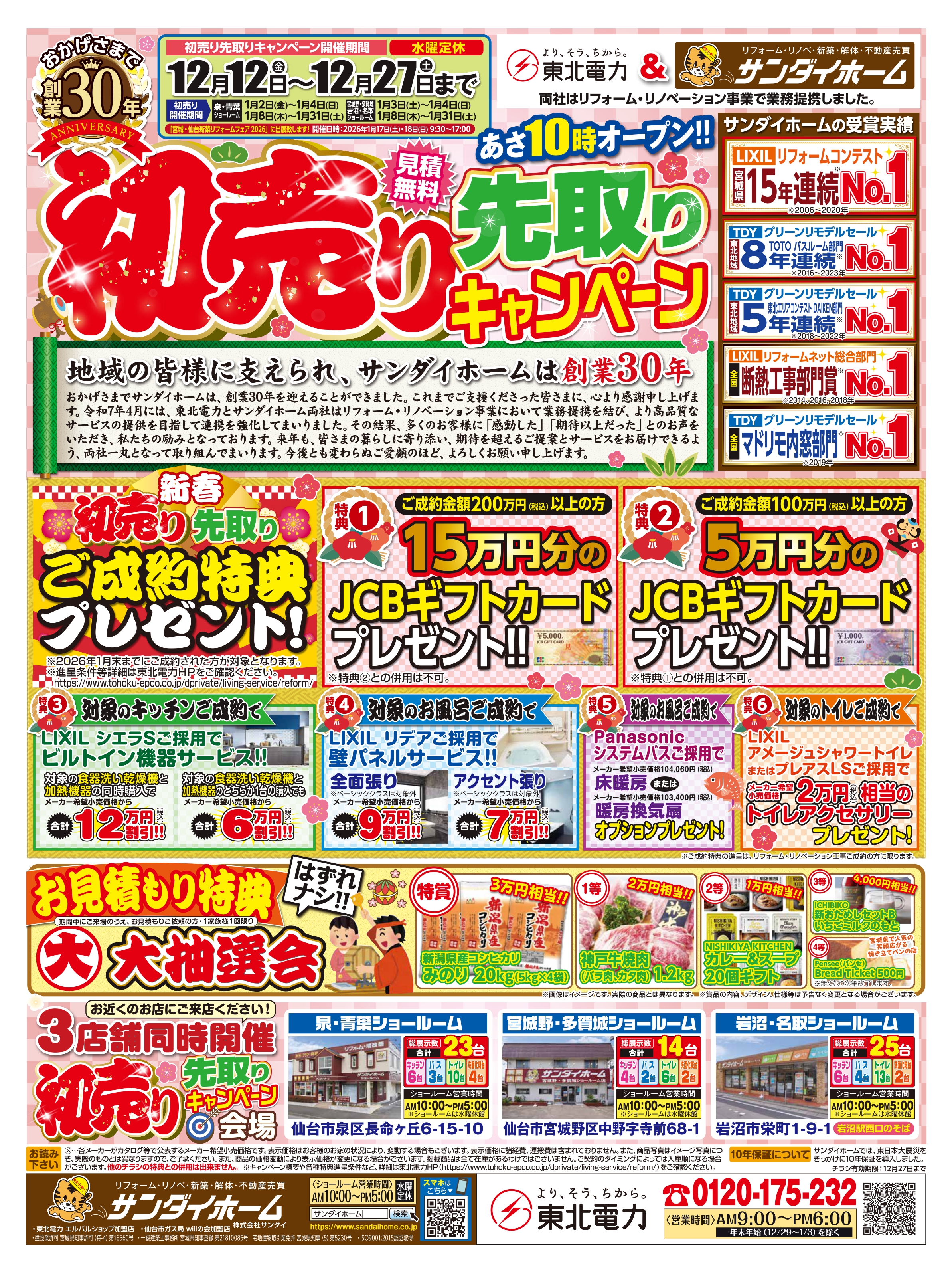 おかげさまで、サンダイホームは今年で創業30年を迎えることができました。地域の皆様への感謝を込めて、特別なキャンペーンを開催いたします!