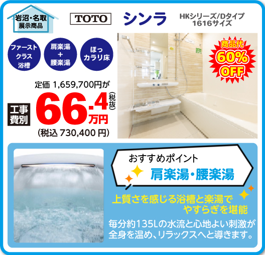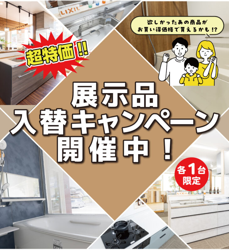 無料見積り・相談 電話で見積り・相談 0120-705-582 【受付】9:00~18:00【定休日】水曜日 電話で見積り・相談 HOME超お得!展示商品入替キャンペーン!! ショールーム展示商品や在庫品を期間限定!超特価でご提供! 【メールフォーム】からお気軽にお問い合わせください。 ※注意※ ・当ページに掲載している展示品及び在庫品の販売は、設置工事も含め弊社で行う事が条件となります。 ・申込が多数の場合、抽選となります。 ・展示商品は補助金申請対象外となりますのでご注意ください。 ・一家庭1点までのお申込みとなります。 ・展示商品のため、多少傷がついていることもあります。ご了承ください。 ショールーム特価商品一覧 各種お問い合わせ 住まいのお悩み相談はこちらから 電話で相談する 自宅から相談する すぐにお悩みを解決 リフォームで最後までサポート WEBで相談する WEBから気軽に相談可能 オンライン相談も可能! 現状調査や見積もり依頼にも対応 ショールームで相談する 実際の商品を見ながら確認が可能 資料と合わせて説明を聞くことが可能 実際のリフォーム現場が見られる - トップに戻る - サンダイホーム・グループ サンダイ本社 サンダイ本社宮城県仙台市泉区長命ケ丘6丁目15-10 | 0120-705-582 泉・青葉ショールーム宮城県仙台市泉区長命ケ丘6丁目15-10 | 0120-705-582 宮城野・多賀城ショールーム宮城県仙台市宮城野区中野寺前68-1 | 0120-705-582 岩沼・名取ショールーム宮城県岩沼市栄町1丁目9-1 | 0120-705-582 営業部 リフォーム・リノベーション・新築宮城県仙台市泉区長命ケ丘6丁目15-10 | 0120-705-582 ライフサポート宮城県仙台市泉区長命ケ丘6丁目15-10 | 0120-705-582 解体宮城県仙台市泉区長命ケ丘6丁目15-10 | 0120-550-130 不動産宮城県仙台市泉区長命ケ丘6丁目15-10 | 0120-105-272 [統括管理会社]株式会社サンダイホーム|宮城県仙台市泉区長命ケ丘6丁目15-10|022-341-5152 [施工管理会社]株式会社住環境テック|宮城県仙台市泉区長命ケ丘6丁目15-10|022-341-5417