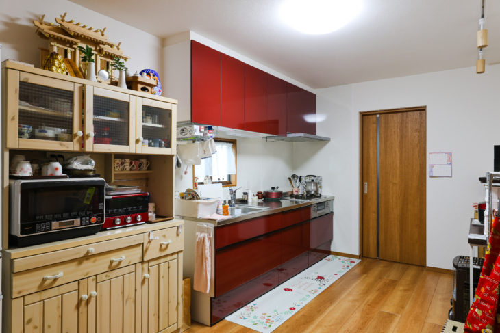 ご夫婦で赤が好きでキッチンは理想の赤いカラーを選ばれました。